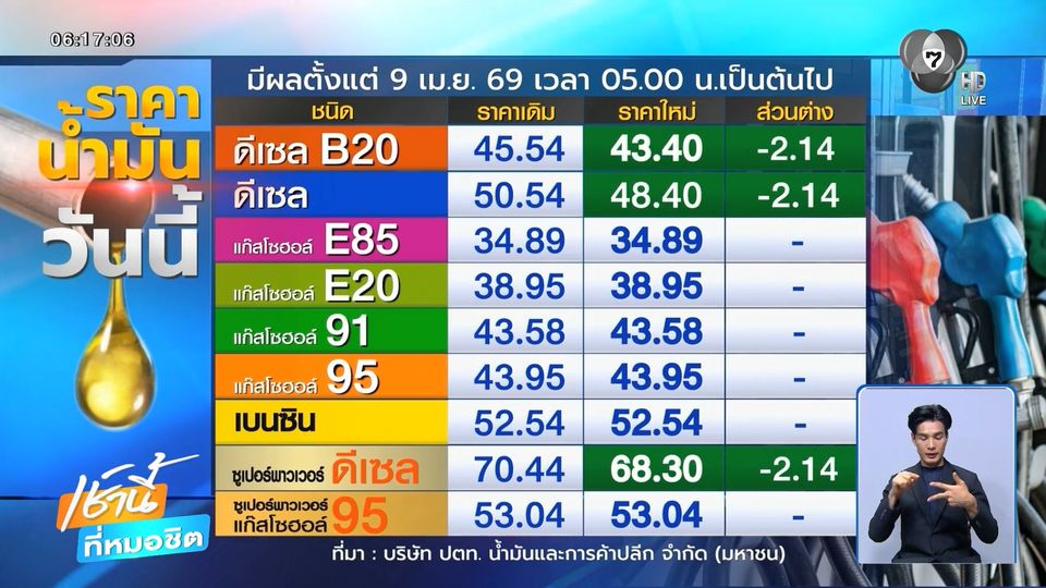 เช้านี้ที่หมอชิต - วันนี้ น่าจะยิ้มกว้างเพิ่มสำหรับคนใช้น้ำมันดีเซล ราคาขายปลีกน้ำมัน บี 7 และ บี 20 หน้าปั๊มก็ลดลงอีกลิตรละ 2 บาท 14 สตางค์ ซึ่งเป็นผลพวงมาจากการลดราคา ณ โรงกลั่น ลงลิตรละ 2 บาท และก็มีสัญญาณดีเพิ่มจากรัฐมนตรีว่าการกระทรวงพลังงานด้วยว่า หลังสงกรานต์ ราคา ณ โรงกลั่น อาจปรับลดลงได้อีก