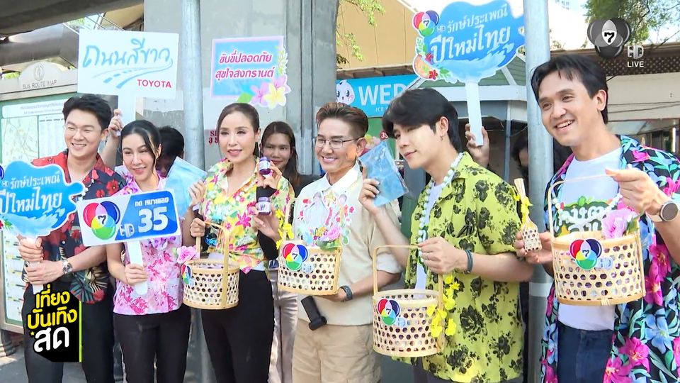 เที่ยงบันเทิงสด - ช่วงนี้หลายคนเริ่มเดินทางกลับต่างจังหวัดกันแล้ว ทางทีมพิธีกรช่อง 7HD นำโดย เอ ไชยา จากรายการ มิตรรัก ทั่วไทย, โต๋นแตร ทินกร และ จุกบี้ พรเทพ จากรายการ เกษตรสุข พร้อมด้วยทีมผู้ประกาศข่าว ชวนกันไปทำกิจกรรม 7HD รักษ์ประเพณีปีใหม่ไทย สงกรานต์ปลอดภัย ส่งใจกลับบ้าน แจกยาดม และซองกันน้ำ พร้อมด้วยรอยยิ้มและความสดใสให้กับพ่อ ๆ แม่ ๆ ที่กำลังจะเดินทางกลับบ้านต่างจังหวัด บรรยากาศคึกคักมาก ๆ เราเดินสายไปแจกกันถึง 3 ที่