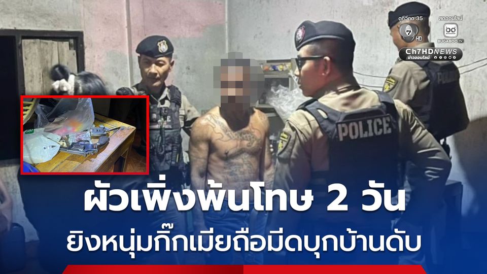 รักสามเส้าเป็นเหตุ ผัวเพิ่งพ้นโทษ 2 วัน ยิงหนุ่มกิ๊กเมียเสียชีวิต ขณะถือมีดพร้าบุกบ้าน อ้างป้องกันตัว