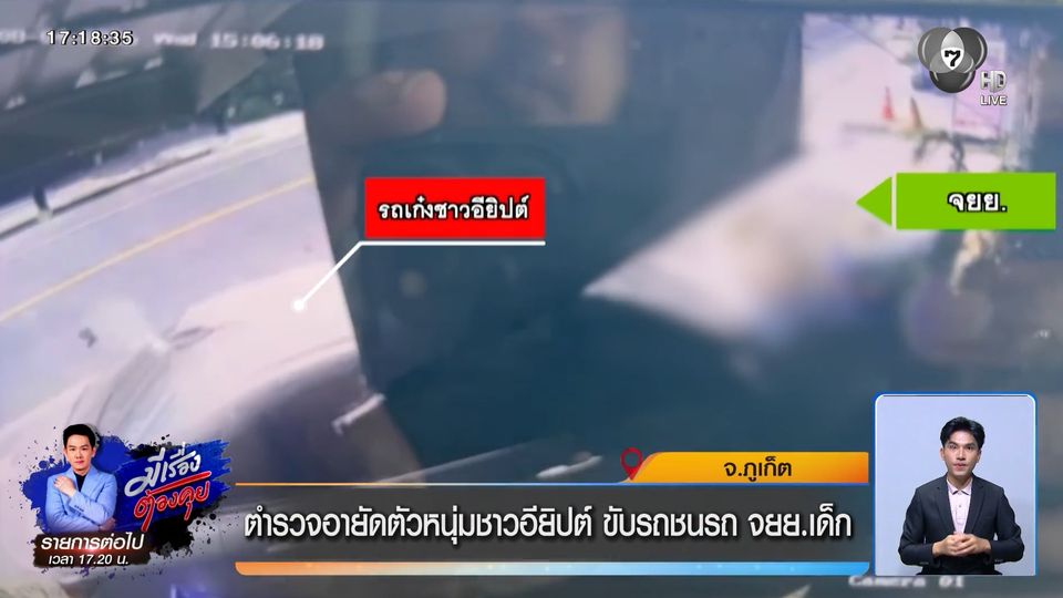 ข่าวเย็นประเด็นร้อน - หนุ่มอียิปต์ ขับรถเก๋งข้ามเลนชนเด็กอายุ 14 ปี อาการโคม่า ญาติของเด็กหวั่นผู้ก่อเหตุ หนีออกนอกประเทศ ล่าสุด ตำรวจภูเก็ต อายัดตัวไว้แล้ว จนกว่าคดีความจะเสร็จสิ้น