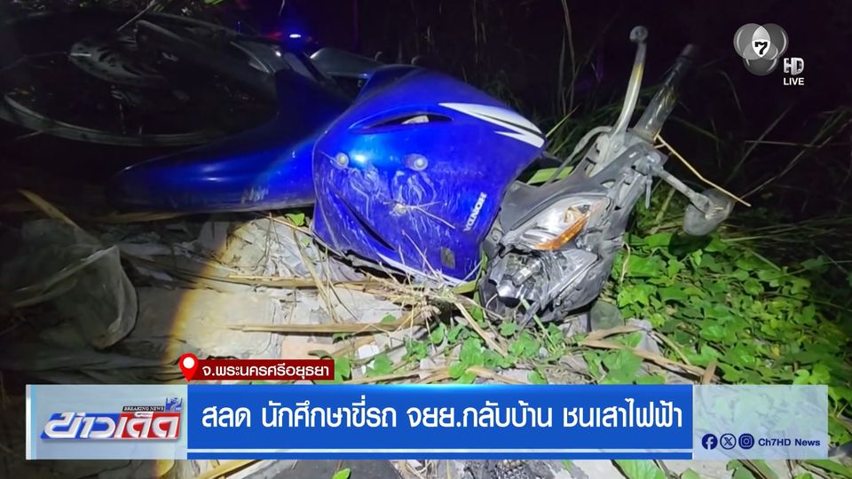 ข่าวเด็ด 7 สี - เกิดเหตุสลด นักศึกษาขี่รถจักรยานยนต์กลับบ้าน เสียหลักชนเสาไฟฟ้า เสียชีวิตในจุดเกิดเหตุ