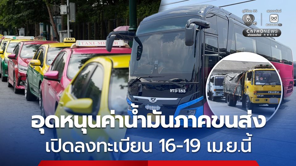 ครม.เคาะงบ 2 พันล้าน อุดหนุนค่าน้ำมัน 42 วัน ช่วยผู้ประกอบการภาคขนส่ง รถโดยสารสาธารณะ รถบรรทุกสินค้า รถตู้ มินิบัส สองแถว แท็กซี่ จักรยานยนต์รับจ้าง เปิดลงทะเบียน 16-19 เม.ย.นี้