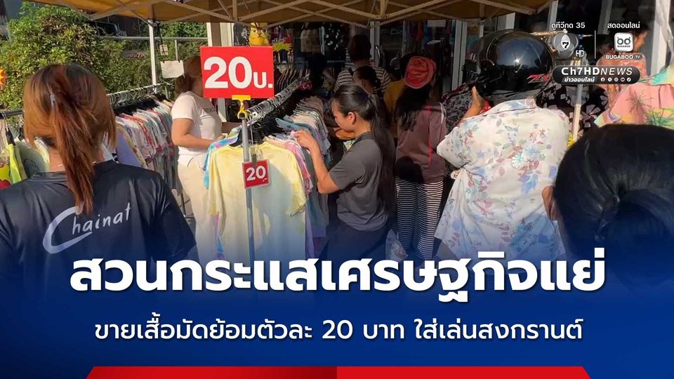 ปรับตัวสู้ยุควิกฤตเศรษฐกิจแย่ ขายเสื้อมัดย้อมเริ่มต้นตัวละ 20 บาท คนแห่ซื้อใส่เล่นน้ำเทศกาลสงกรานต์