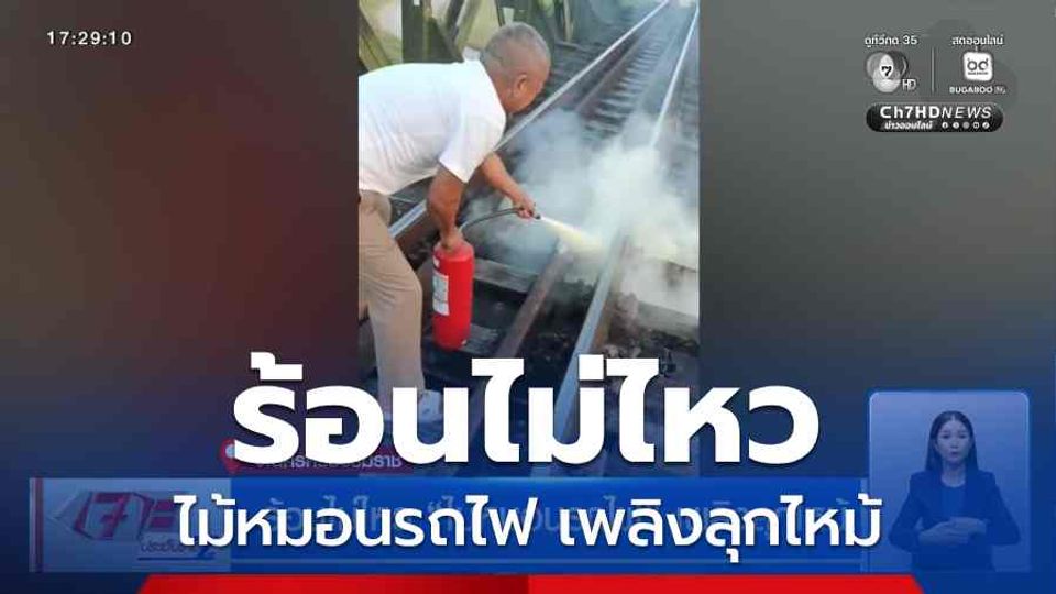 เจาะประเด็นข่าว 7HD - อากาศร้อนไม่ไหวเกิดไฟลุกไหม้บนไม้หมอนรางรถไฟ ช่วงจังหวัดนครศรีธรรมชาติ โชคดีมีคนเห็น และดับไฟได้ทัน