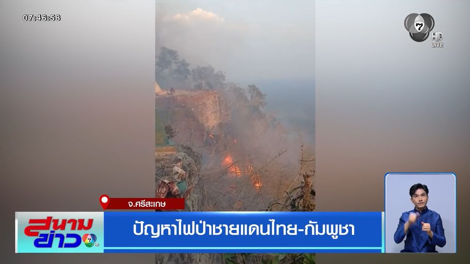 สนามข่าว 7 สี - ชาวบ้านที่อาศัยอยู่ใกล้กับชายแดน ด้านภูมะเขือ ผวาหนัก หลังพบว่าทหารกัมพูชาเผาป่าติดชายแดนไทย เกรงว่าจะมีการปะทะกันอีกรอบ