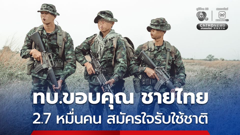 ทบ.ขอบคุณ ชายไทย กว่า 2.7 หมื่นคน สมัครใจรับใช้ชาติ เป็นทหารกองประจำการ ชี้ ยอดสมัครใจเพิ่มขึ้นต่อเนื่อง