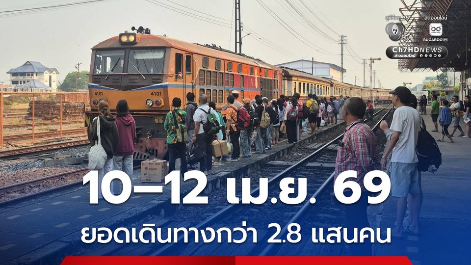 วันนี้ (13 เม.ย. 69) การรถไฟแห่งประเทศไทย (รฟท.) เปิดเผยภาพรวมการเดินทางของประชาชนในช่วงเทศกาลสงกรานต์ 2569 ระหว่างวันที่ 10–12 เม.ย. 69 พบว่ามีผู้โดยสารใช้บริการรถไฟทั่วประเทศรวมทั้งสิ้น 282,719 คน