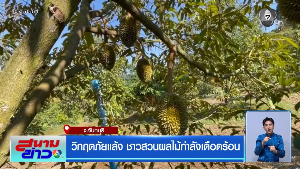 สนามข่าว 7 สี - ทุกข์ชาวสวนผลไม้ จังหวัดจันทบุรี ต้องเผชิญวิกฤตภัยแล้ง เดือดร้อนหนัก คลองต้นน้ำที่ใช้หล่อเลี้ยงหลายตำบลแห้งขอด