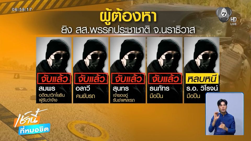 เช้านี้ที่หมอชิต - คดีคนร้ายลอบยิง นายกมลศักดิ์ ลีวาเมาะ สส.เขต 5 จังหวัดนราธิวาส พรรคประชาชาติ เมื่อวันที่ 20 มีนาคม หน้าบ้านพักในอำเภอบาเจาะ จังหวัดนราธิวาส มีความคืบหน้าครั้งสำคัญ หลังฝ่ายความมั่นคง ตั้งโต๊ะแถลงข่าวความคืบหน้าการตั้งคณะกรรมการสอบสวนเรื่อง "รถหลวง"
