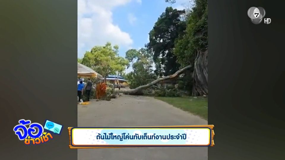 จ้อข่าวเช้า - ต้นไม้ใหญ่โค่นทับเต็นท์งานประจำปี ตาย 2 คน
