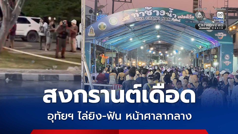 สงกรานต์เดือด วานนี้ (13 เม.ย.69) เวลาประมาณ 20.00 น. ตำรวจ สภ.เมืองอุทัยธานี จ.อุทัยธานี รับแจ้งเหตุกลุ่มวัยรุ่นยกพวกทะเลาะวิวาท ใช้อาวุธปืนและมีดไล่ยิงไล่ฟันกัน ขณะประชาชนกำลังเล่นน้ำสงกรานต์อย่างคึกคัก บริเวณลานสุพรรณิการ์ ถนนศรีอุทัย หน้าศาลากลางจังหวัดอุทัยธานี ส่งผลให้มีผู้ได้รับบาดเจ็บหลายราย
