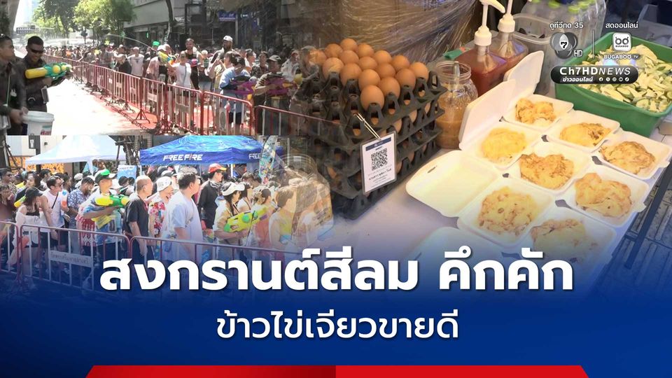 (14 เม.ย. 69) บรรยากาศวันสุดท้ายการเล่นน้ำสงกรานต์ พื้นที่ถนนสีลมยังคงมีประชาชนชนเข้ามาเล่นน้ำกันอย่างคึกคัก โดยวันนี้คาดว่านักท่องเที่ยวจะเข้ามาเล่นน้ำมากที่สุด มากกว่า 200,000 คน ขณะที่บรรดาพ่อค้า - แม่ค้าแผงลอยตั้งขายข้าวไข่เจียวเต็มไปด้วยรอยยิ้ม พร้อมเผยว่าขายดีมากกว่าปีที่ผ่านมาโดยเฉลี่ยขายได้มากกว่า 300 ถึง 500 ถ้วยต่อวัน