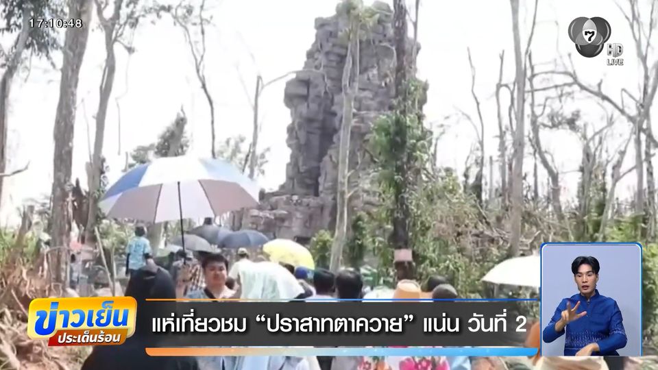 ข่าวเย็นประเด็นร้อน - วันที่ 2 ของการเปิดให้นักท่องเที่ยวเข้าชม ปราสาทตาควาย และเนิน 350 ในช่วงสงกรานต์ วันนี้ปรับเวลาให้ขึ้นชมเร็วขึ้น เวลา 07.00 น. โดยยังมีคนขึ้นเที่ยวชมจำนวนมากเหมือนเดิม