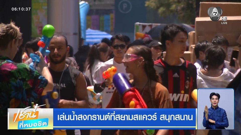 โดยเป็นวัยรุ่น Gen Z อย่างเช่นน้อง ๆ กลุ่มนี้ เป็นน้อง ๆ กลุ่ม ม.ปลาย เด็กกรุงเทพรวมตัวกลุ่มเพื่อนกันมาเล่นน้ำที่สยามนะครับ โดยเหตุผลหลัก ๆ ที่เลือกมาเล่นน้ำที่นี่ ก็เพราะว่าสยามสแควร์สะอาดปลอดภัยไม่มีแป้ง แล้วก็มีกิจกรรมให้ทำหลากหลายทั้งสาดน้ำ และคอนเสิร์ตบนเวที