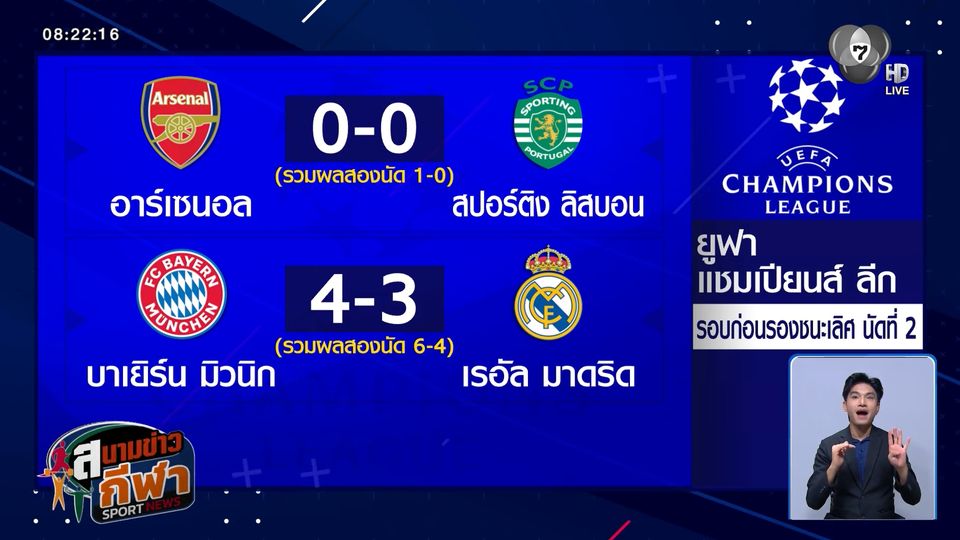 สนามข่าวกีฬา - ผลฟุตบอล ยูฟ่า แชมเปียนส์ ลีก รอบก่อนรองชนะเลิศ นัดที่สอง