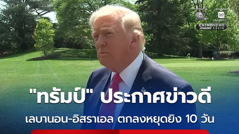 “โดนัลด์ ทรัมป์” เผย เลบานอนและอิสราเอลเห็นพ้องตกลงหยุดยิงเป็นเวลา 10 วัน ปูทางในการเจรจารอบใหม่ระหว่างสหรัฐฯ กับอิหร่าน และเป็นสัญญาณที่ดีว่าสงครามอิหร่านอาจใกล้ถึงจุดสิ้นสุดแล้ว