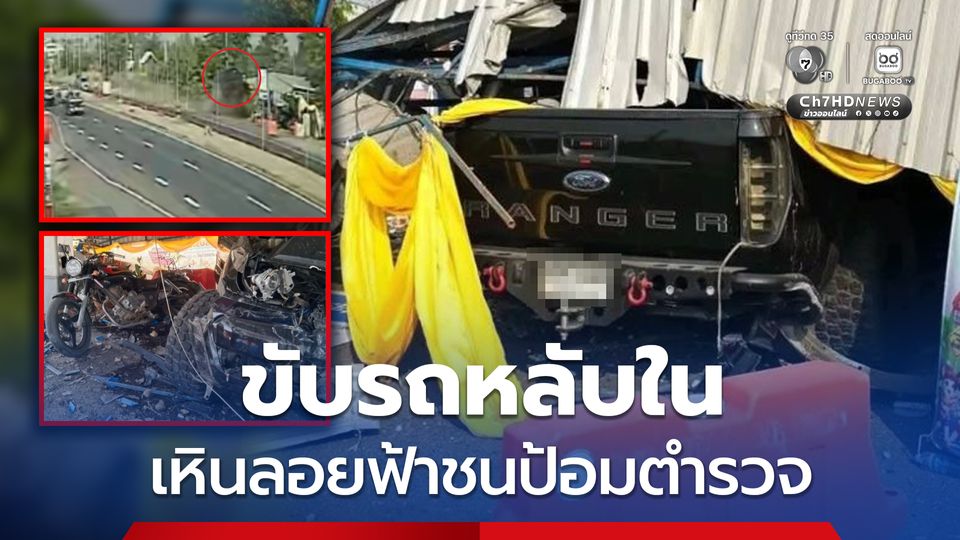 อุบัติเหตุระทึก ชายวัย 43 ปี พักผ่อนน้อย ขับรถกลับไปทำงาน หลังหยุดช่วงเทศกาลปีใหม่ วูบหลับใน ขับรถกระบะเสียหลัก เหินลอยฟ้าพุ่งชนป้อมตำรวจพังยับ