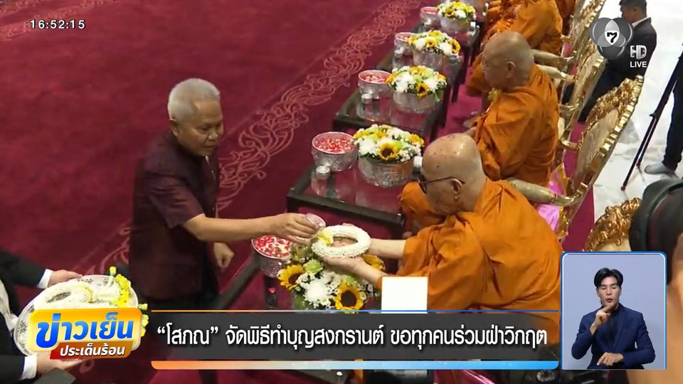 "โสภณ" จัดพิธีทำบุญสงกรานต์ ขอทุกคนร่วมฝ่าวิกฤต