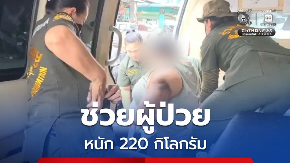 คนป่วยไม่ท้อกู้ภัยไม่ถอย! กู้ภัยนับ 10 คน ช่วยผู้ป่วยหนัก 220 กิโลกรัม ส่งโรงพยาบาลด้วยความทุลักทุเล