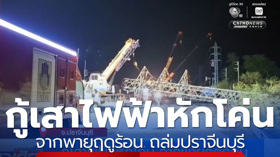 ข่าวเด็ด 7 สี - การไฟฟ้าฯ กู้เสาไฟแรงสูง ที่หักโค่กจากพายุฤดูร้อน ทำไฟดับเป็นบริเวณกว้าง ในอำเภอกบินทร์บุรี จังหวัดปราจีนบุรี