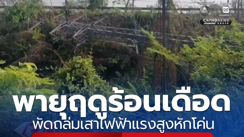 เจาะประเด็นข่าว 7HD - เจ้าหน้าที่เร่งเคลียร์เสาไฟฟ้าแรงสูงหักโค่น 7 ต้น บนถนนในจังหวัดปราจีนบุรี หลังพายุฤดูร้อนพัดถล่ม คาดน็อตที่ยึดเสาไฟฟ้าถูกขโมย ทำให้ไม่มีตัวยึดระหว่างเสาไฟฟ้ากับฐานคอนกรีต