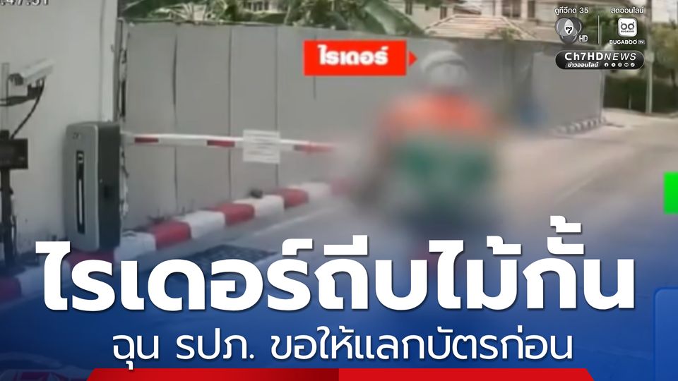 เจาะประเด็นข่าว 7HD - เหตุการณ์ต่อไปนี้ นำมาเสนอให้ฟัง 2 มุม กรณี ไรเดอร์ถีบไม้กั้นทางเข้าหมู่บ้าน เหตุเพราะฉุน รปภ. ขอให้แลกบัตรก่อน แต่เจ้าตัวไม่ยอม ขอให้ลงแค่บันทึกข้อมูล เพราะก่อนหน้านี้ ไรเดอร์เคยให้ใบขับขี่ แล้วหาย