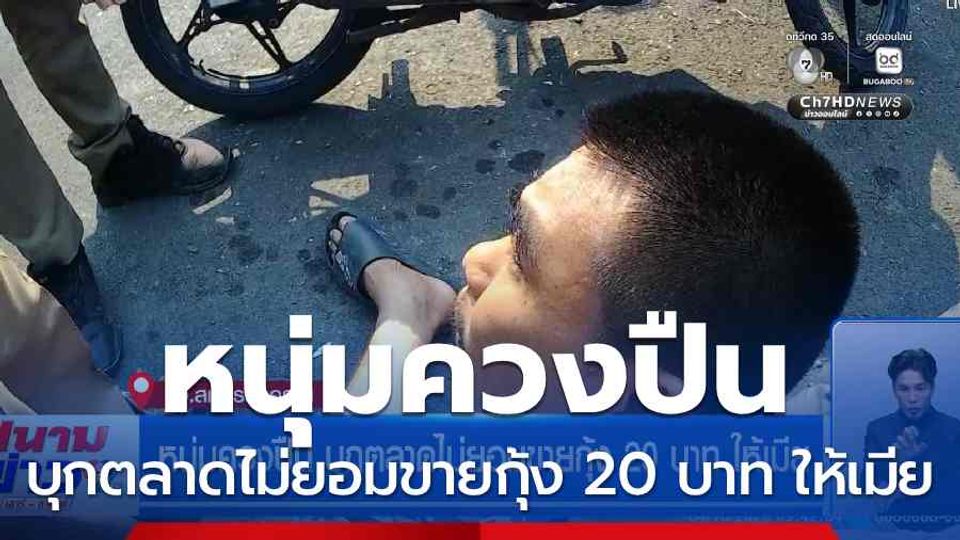 สนามข่าวเสาร์-อาทิตย์ - ผัวสายโหด ฉุนขาดเมียไปตลาดแต่เช้ามืด ซื้อกุ้ง 20 บาท แม่ค้าไม่ขายให้ คว้าปืนและมีดบุกขู่แม่ค้า แตกตื่นกันทั้งตลาดแม่กลอง