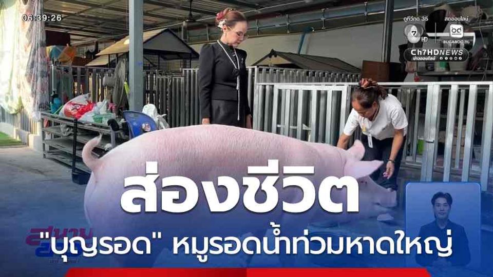 สนามข่าวเสาร์-อาทิตย์ - คุณผู้ชมจำกันได้ไหม หมูตัวหนึ่งชื่อ "เจ้าบุญรอด" ถูกน้ำพัดลอยไปติดบนหลังคาบ้าน เมื่อตอนเกิดอุทกภัยหาดใหญ่ จังหวัดสงขลา ได้รับบาดเจ็บ มีผู้ใจบุญขอรับ "เจ้าบุญรอด" ไปเลี้ยงชุบชีวิตใหม่ พาไปดูปัจจุบันนี้เป็นอย่างไร