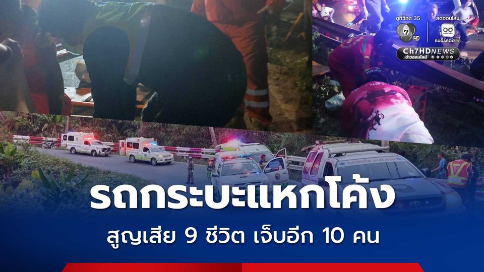 สลด เกิดอุบัติเหตุหมู่ รถกระบะแหกโค้งตกข้างทางพลิกคว่ำ เทกระจาดคนเกลื่อน เสียชีวิต 9 คน บาดเจ็บอีก 10 คน