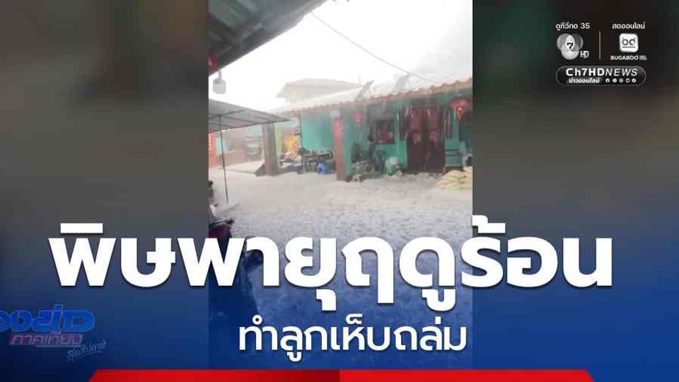 ห้องข่าวภาคเที่ยง สุดสัปดาห์ - หลายพื้นที่ได้รับความเสียหาย จากอิทธิพลของพายุฤดูร้อน ถล่มทั่วไทยตอนบน อย่าง ดอยอ่างขาง จังหวัดเชียงใหม่ ขาวโพลนไปด้วยลูกเห็บ
