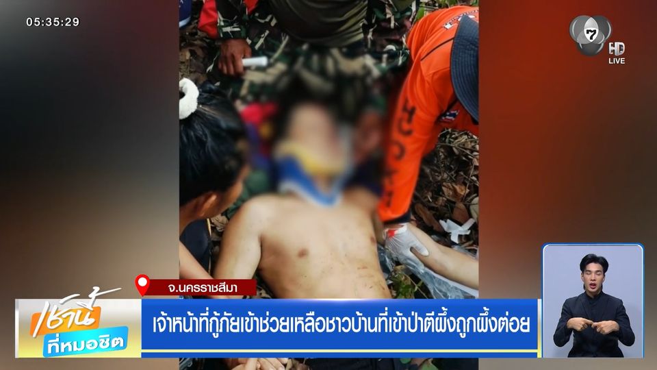 เช้านี้ที่หมอชิต - เจ้าหน้าที่กู้ภัยเข้าช่วยเหลือชาวบ้านที่ออกไปตีผึ้ง เพื่อเอาน้ำผึ้งเดือน 5 แต่พลาดถูกผึ้งต่อยจนได้รับบาดเจ็บ