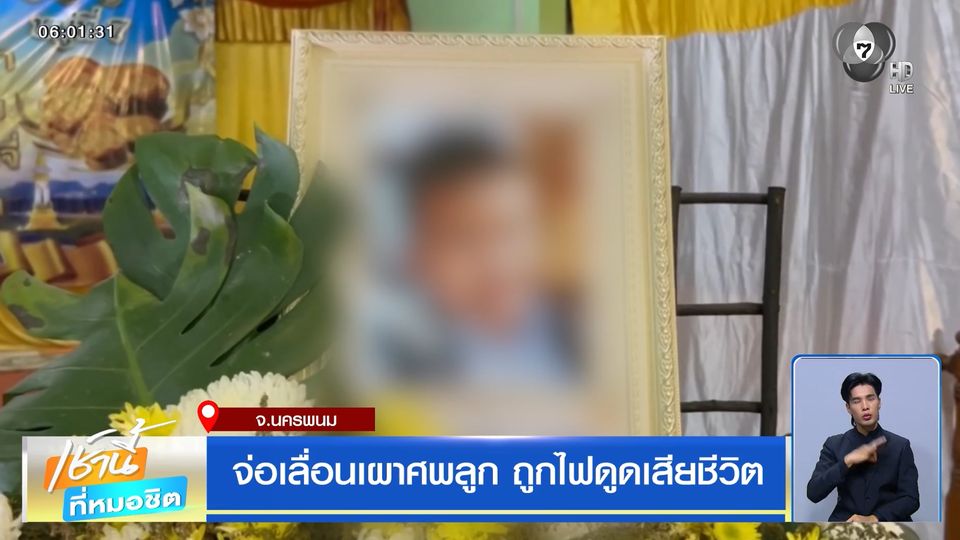 วันนี้ (20 เม.ย.) ทางครอบครัวกำหนดให้จัดพิธีฌาปนกิจลูกชาย อายุ 12 ขวบ หลังถูกไฟดูดเสียชีวิตข้างเวทีหมอลำซิ่ง ขณะไปเที่ยวเล่นน้ำสงกรานต์ ภายในงานมหาสงกรานต์ของเทศบาลตำบลธาตุพนม อำเภอธาตุพนม จังหวัดนครพนม เมื่อวันที่ 15 เมษายนที่ผ่านมา
