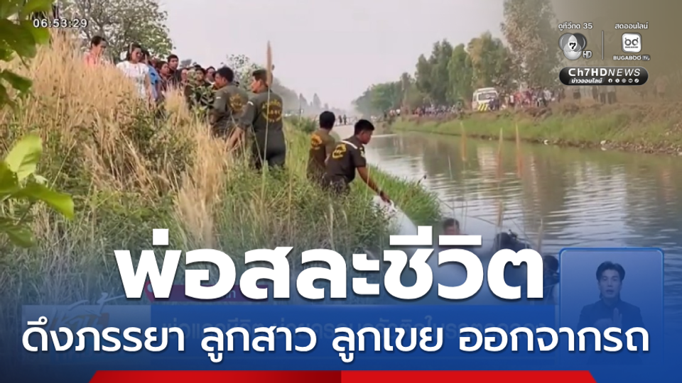 เช้านี้ที่หมอชิต - ที่ จังหวัดชัยนาท รถกระบะหักหลบรถเก๋งตัดหน้า จนเสียหลักตกคลองชลประทาน พ่อเสียสละดึงภรรยา ลูกสาว ลูกเขย ออกจากรถจนรอดตาย ส่วนตัวเองหมดแรงจมน้ำเสียชีวิต