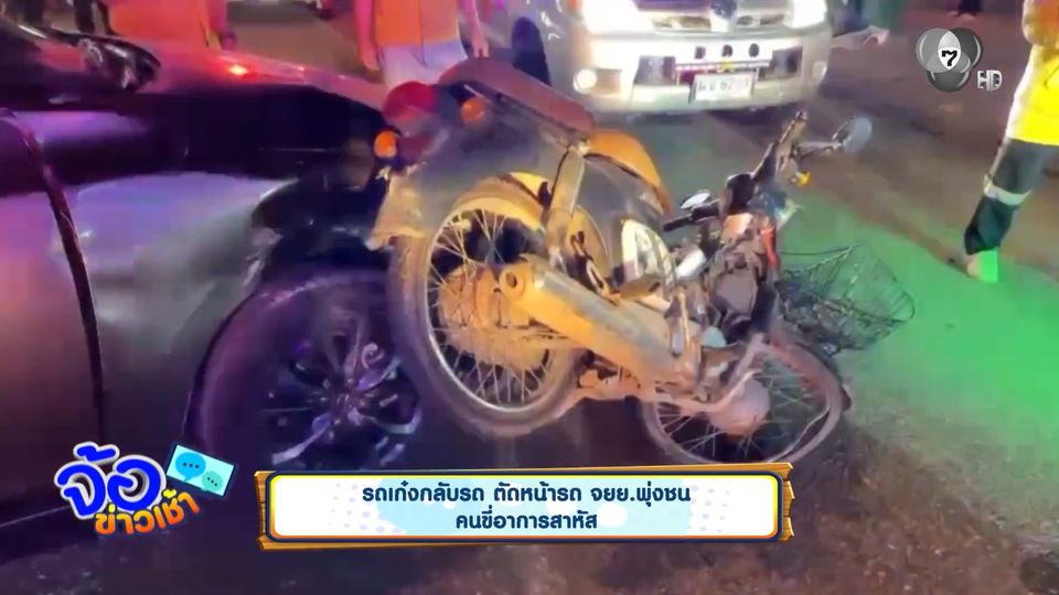 จ้อข่าวเช้า - รถเก๋งกลับรถ ตัดหน้ารถ จยย.พุ่งชน คนขี่อาการสาหัส