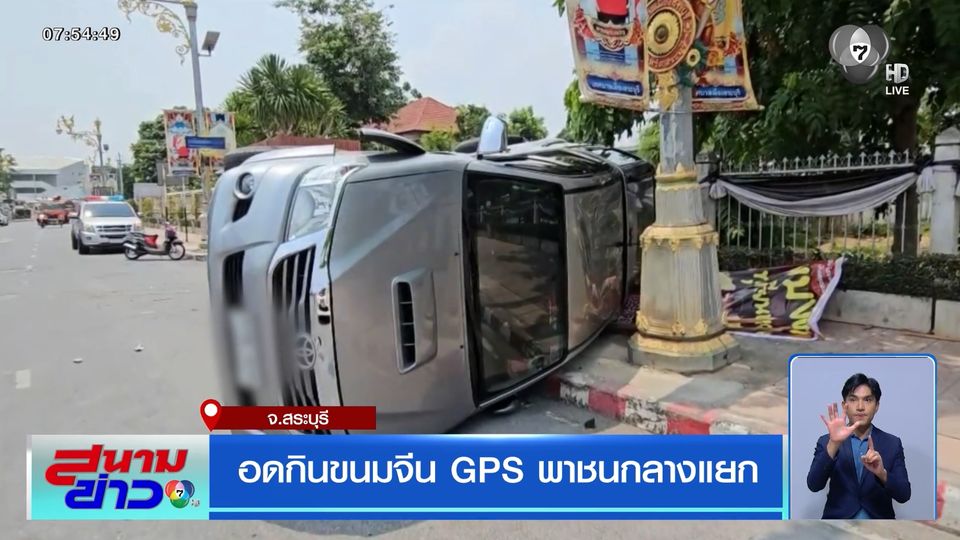 สนามข่าว 7 สี - แม่เปิดสัญญาณ GPS จะพาลูกไปกินขนมจีนต่างอำเภอ ไม่รู้ว่าเส้นทางที่กำลังจะผ่านเป็นทางแยก ทำให้ชนรถกระบะที่ขับมาจากฝั่งขวาจนพลิกตะแคง