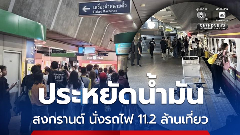 ประหยัดน้ำมัน-เลี่ยงรถติด 10 วันเทศกาลสงกรานต์ 69 ผู้ใช้บริการรถไฟสะสมทะลุ 11.2 ล้านเที่ยว โดยเฉพาะวันเฉลิมฉลองเล่นน้ำสงกรานต์ คนนั่งรถไฟฟ้าสูงกว่า 1.1 ล้านเที่ยว/วัน