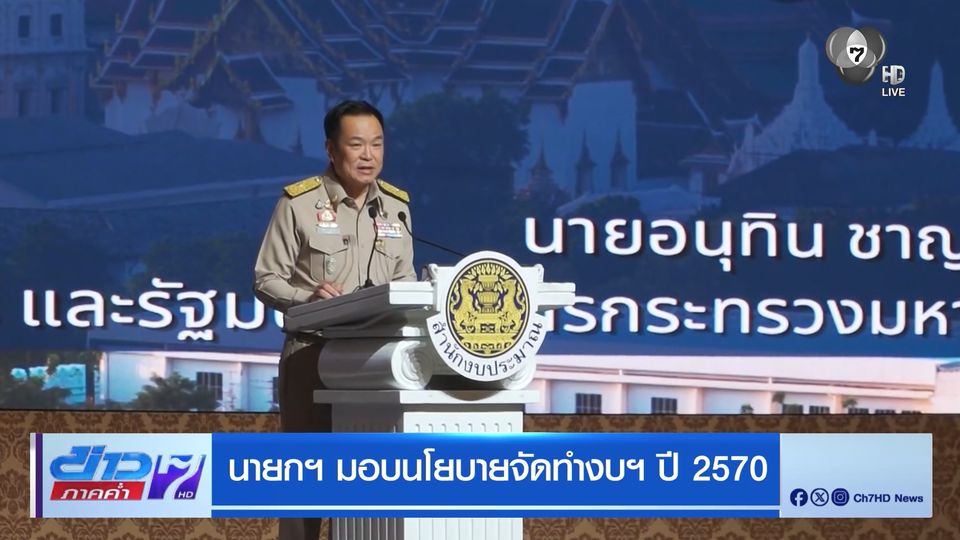 ข่าวภาคค่ำ - นายกรัฐมนตรี เป็นประธานมอบนโยบายการจัดทำงบประมาณปี 2570 กรอบวงเงิน 3.78 ล้านล้านบาท พร้อมเน้นย้ำให้ความสำคัญกับการปกป้องอธิปไตยไทย