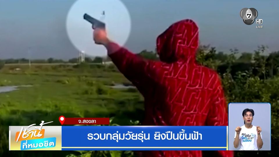 เช้านี้ที่หมอชิต - เหตุการณ์กลุ่มวัยรุ่นคึกคะนอง ยิงปืนกลางทุ่งในช่วงสงกรานต์ ตำรวจจังหวัดสงขลาตามรวบตัวได้ยกแก๊ง ทั้งคนยิง และคนนำคลิปไปโพสต์ลงโซเชียลฯ