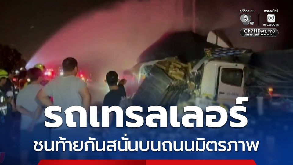 สนามข่าว 7 สี - เวลา 23.00 น. คืนที่ผ่านมาเกิดอุบัติเหตุ รถเทรลเลอร์ชนท้ายกันสนั่นบนถนนมิตรภาพ จังหวัดนครราชสีมา ก๊าซ NGV รั่ว เจ้าหน้าที่เร่งควบคุม