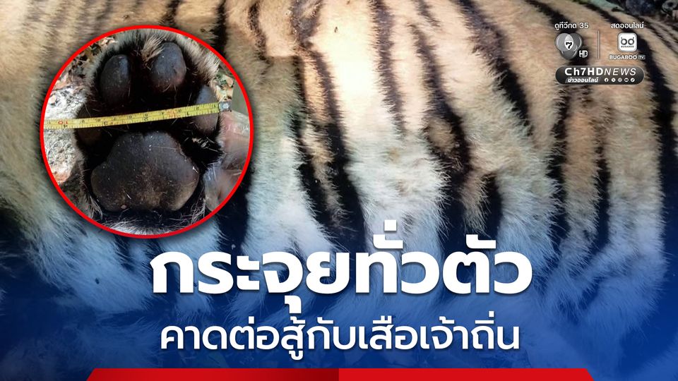 พบซากเสือโคร่งวัยรุ่นกลางทุ่งใหญ่ฯ ตะวันออก อุ้งเท้าหน้ากว้าง 8.5 ซม. มีแผลกระจุยทั่วตัว คาดสู้กับเสือเจ้าถิ่นที่แข็งแกร่งกว่า เผาทำลายซาก ป้องกันการโจรกรรม หนัง-กระดูก นำไปใช้ในทางที่ผิดกฎหมาย