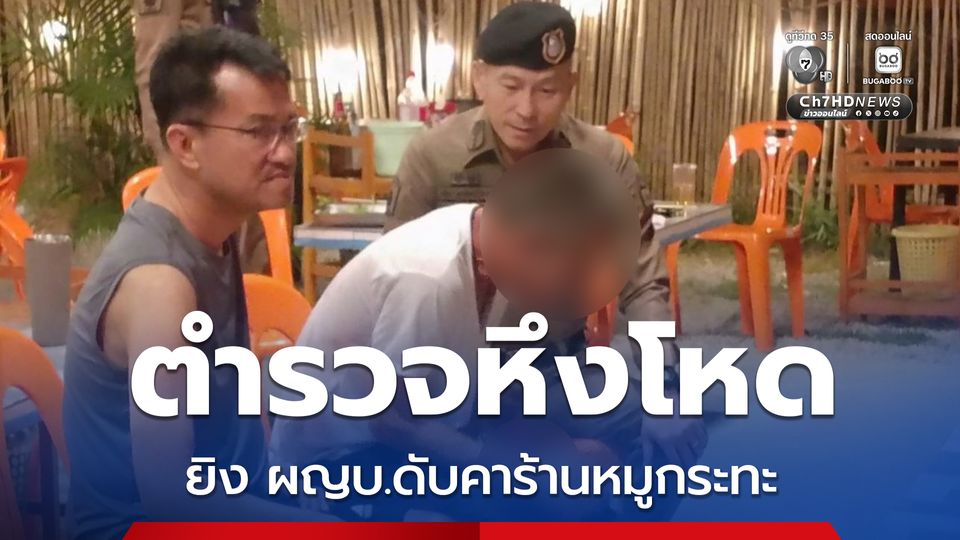 ตำรวจปืนโหด หึงภรรยาที่เป็นผู้ใหญ่บ้าน แม้จะหย่าขาดทางนิตินัย แต่พฤตินัยยังอยู่ด้วยกัน จับได้ปันใจให้ชายอื่น ยิงดับคาร้านหมูกระทะ