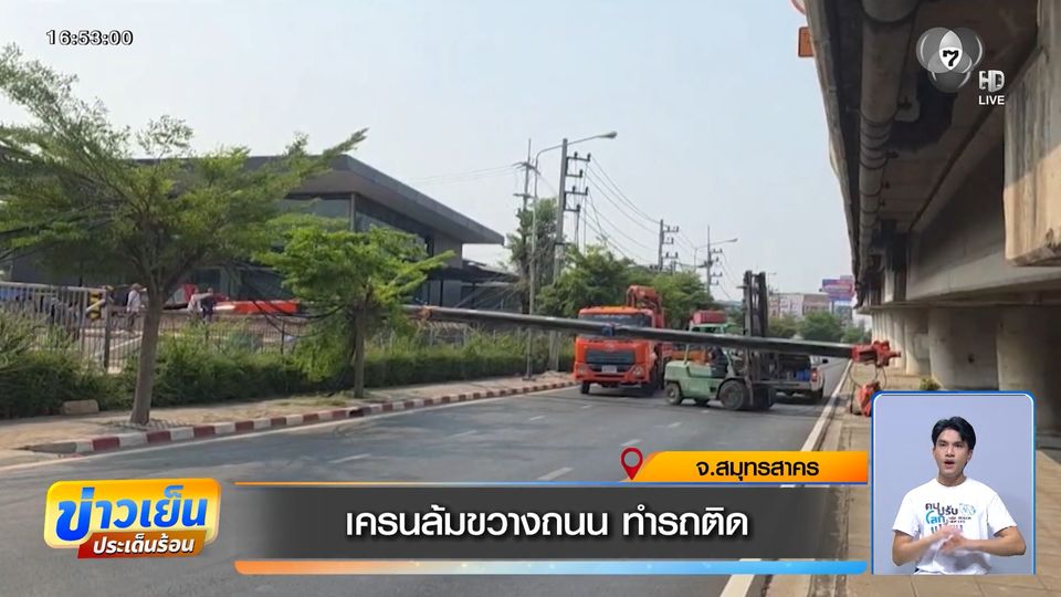 ข่าวเย็นประเด็นร้อน - เมื่อช่วง 14.30 น. ที่ผ่านมา เกิดเหตุเครนล้มขวางถนนพุทธมณฑลสาย 4 ห่างจากแยกพุทธสาคร ถนนเพชรเกษม