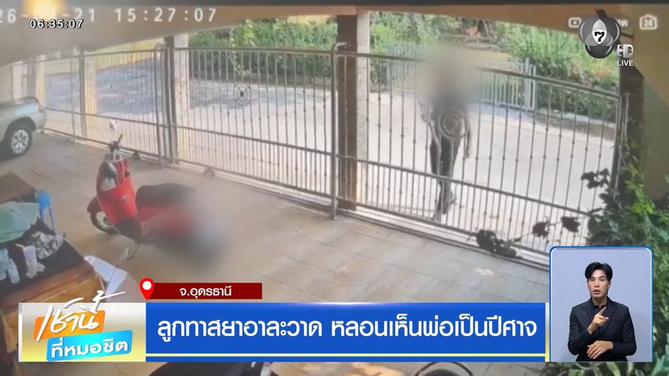 กล้องวงจรปิดบันทึกภาพขณะ นายแจ็ค อายุ 41 ปี ถืออาวุธบุกมาอาละวาดขอเงินแม่ ที่บ้านพักเขตเทศบาลนครอุดรธานี เพื่อไปซื้อยาเสพ พอไม่ได้ก็ด่าทอ ถีบประตูรั้วขู่จะฆ่าพ่อ-แม่ เป็นเช่นนี้ทั้งกลางวันและกลางคืน