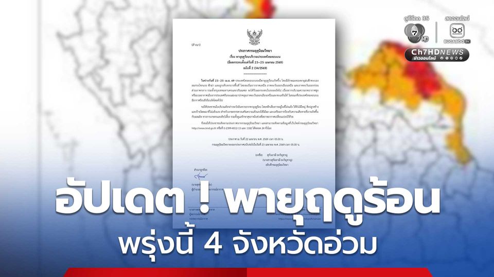 วันนี้ (22 เม.ย.69) เวลา 05.00 น. กรมอุตุนิยมวิทยา ประกาศ ฉบับที่ 2 ช่วงวันที่ 23–25 เม.ย. 69 ประเทศไทยตอนบนจะมีพายุฤดูร้อนเกิดขึ้น โดยมีลักษณะของพายุฝนฟ้าคะนอง ลมกระโชกแรง ฟ้าผ่า และลูกเห็บตกบางพื้นที่ โดยจะเริ่มจากภาคเหนือ ภาคตะวันออกเฉียงเหนือ และภาคตะวันออกก่อน ส่วนภาคกลาง รวมทั้งกรุงเทพมหานครและปริมณฑล จะได้รับผลกระทบในระยะถัดไป