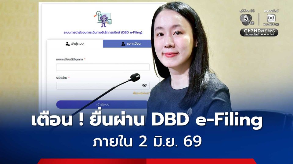 รัฐบาลย้ำเตือน ! นิติบุคคลยื่นงบการเงินผ่าน DBD e-Filing ภายใน 2 มิ.ย. 69 ย้ำเสริมความน่าเชื่อถือ–รองรับเศรษฐกิจดิจิทัล