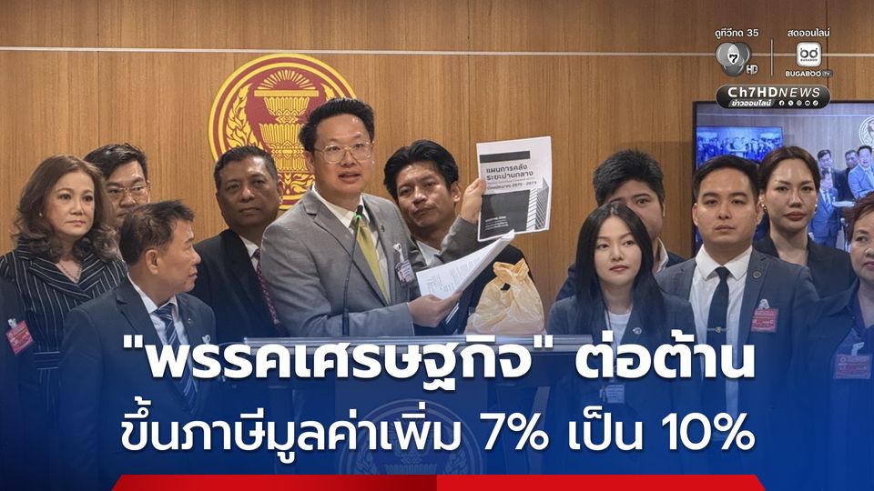 "พรรคเศรษฐกิจ" แถลงจุดยืนต่อต้านการขึ้นภาษีมูลค่าเพิ่มจาก 7% เป็น 10% แนะ รัฐเก็บภาษีจากคนต่างด้าว - ปราบทุจริตคอร์รัปชัน แทนการขึ้นภาษี