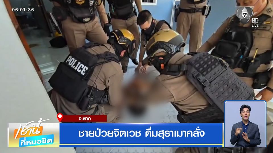 ตำรวจ สภ.แม่สอด 10 นาย พร้อมไม้ง่าม บุกเข้าชาร์จตัวชาย เกิดอาการคลุ้มคลั่ง ภายในบ้านเช่า อำเภอแม่สอด จังหวัดตาก ช่วง 16.30 น. ของเมื่อวาน (22 เม.ย.) ชาวบ้านต่างตกใจ-รีบหาที่หลบเนื่องจากกลัวจะไม่ปลอดภัย