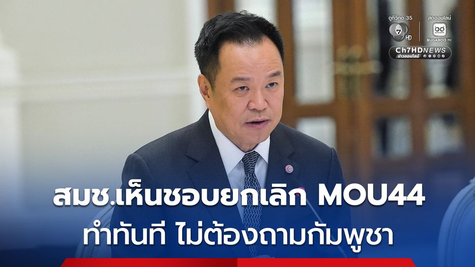 “นายกฯ” เผย สมช.เห็นชอบยกเลิก MOU44 ทำได้ทันทีไม่ต้องถามความเห็น กัมพูชา เตรียมให้ กต.ทำเรื่องเสนอเข้า ครม. พร้อมใช้กลไก UNCLOS แทน ไฟเขียว ตั้ง “ฐนัตถ์” เป็นหัวหน้าคณะพูดคุยสันติสุข จชต.