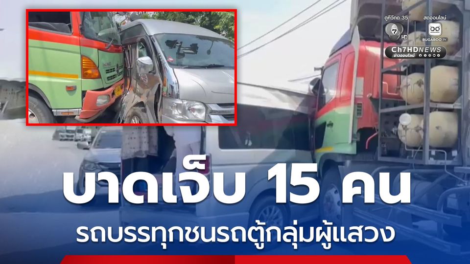 อุบัติเหตุรถบรรทุกพ่วงชนกับรถตู้กลุ่มผู้แสวงบุญล้างป่าช้า จากจังหวัดสระแก้ว เจ็บอื้อ 15 คน กลางแยก คนขับรถบรรทุก เผย ตนมาทางตรงที่เป็นไฟเขียว จู่ๆรถตู้ขับตัดหน้ากระชั้นชิดจึงเบรกไม่ทัน