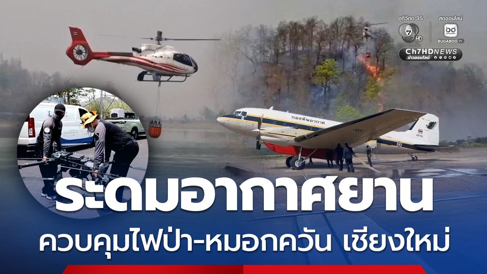 เร่งแก้ไขปัญหาไฟป่า หมอกควัน และฝุ่นละออง ภาค 3 ส่วนหน้า ระดมอากาศยาน ช่วยควบคุมไฟป่าบนภูเขาสูงจังหวัดเชียงใหม่ต่อเนื่อง